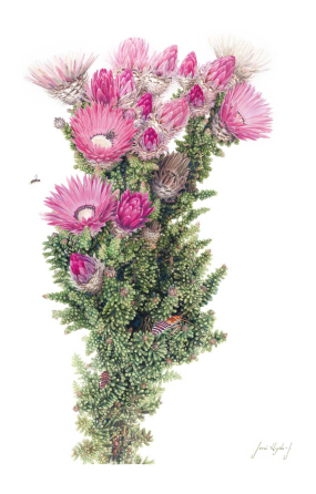 This collection of beautiful, distinctive botanical art pieces is intended to reach a broader audience by engaging people on an emotional level, and inspiring them to become ambassadors for conserving and promoting the Cape Floral Kingdom and the majesty of the Cape fynbos.
